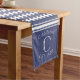 Thinner stripes add a slight twist on the classic navy blue striped table runner. Customize with your family name, monogram, and year established