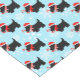 Adorável, os cães negros escoceses são tão festivos vestindo chapéus de Papai Noel, cachecóis e doces de carregando. Este padrão de Natal tem flocos de neve bonito em uma cor azul clara de fundo personalizada. Você pode selecionar sua cor de fundo favorita para este corredor de mesa divertido. É perfeito para amantes do Terrier escocês!