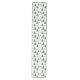 Há uma variedade de imagens no estilo da árvore de Natal neste corredor festivo de mesa de Férias. As cores utilizadas são predominantemente verdes sobre o branco, com toques de vermelho e de ouro. Divertido para qualquer idade!