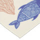 Adicione charme costeiro à sua mesa de jantar com este peixe e coral mesa. Peixes índios e motins de coral macio em uma nuvem de fundo criam uma busca moderna e inspirada no litoral para encontros cotidianos ou especiais.