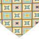 Abstract geometric pattern with diamond shapes in pastel colors. Each contains a star-like motif in teal, orange, or brown. Retro and symmetrical design.