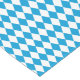As cores instantaneamente reconhecíveis e o padrão da bandeira bávaro, este corredor de mesa de padrão azul e branco é uma escolha excelente para celebrar o Oktoberfest. O padrão é constituído por lozenges azuis e brancos (em forma de diamante) com as cores representativas dos lagos, rios e céu da Baviera.