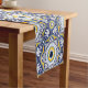 💙 💛 Belos Azulejos amarelos, brancos e azuis, Padrões inspirados pelo famoso azulejo-trabalho português, Azulejos. Perfeito como decoração domiciliar ou como presente para a pessoa da moda. Runner de Mesa Curta com padrão Azulejos impressionante
