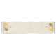 Um corredor de mesa com uma ilustração fofinha apresentando um veado bebê e um pequeno esquilo segurando uma bolota e uma borboleta voando sobre suas cabeças. Estas adoráveis criaturas de floresta em pé sobre uma grama com alguns cogumelos brancos perto de seus pés. Fundo arenoso castanho