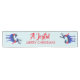 Mesa que diz: Um Feliz Natal. Um fundo azul-esverdeado claro. Ilustrado com um par de veados escandinavos vestindo lenços vermelhos. Marcações decorativas em seus corpos.