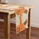 Este corredor mesa incrível apresenta um desenho fofo de um homem colorido de pão de gengibre. Ele tem botões vermelhos e verdes, um sorriso grande em seu rosto e bruxas vermelhas e verdes em volta de suas pernas prontas para uma festa de Natal.