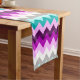 Um corredor mesa de 14" x 72" com um lindo e colorido design de chevrons em ameixa roxa, lilac, branco, minúsculo, turquesa e cinza.