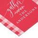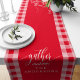 Crie uma atmosfera acolhedora e convidativa para suas reuniões de feriados com esse corredor de Mesa de Ação de Graças de Colher Buffalo Vermelho. Apresentando uma design de xadrez de búfalos na moda com a palavra "Reunir" e um nome de família personalizável, este corredor de mesa é perfeito para adicionar um toque personalizado à sua queda e decor de Ação de Graças. Ideal para jantas familiares e comemorações festivas, traz uma vibração calorosa e acolhedora para a sua mesa.