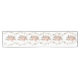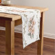 Este lindo corredor de mesa tem uma delicada borda de folha no topo e no fundo com flores silvestres cor-de-rosa correndo pelo centro. As cores incluem verde-sábio, cor-de-rosa-pincel e castanho.