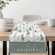 Traga um charme festivo para o seu jantar de férias com este corredor personalizado de mesa de pinheiro de floresta, da Redwood & Vine Design Co., apresentando um padrão rústico repetindo cada árvore verde e um painel de personalização verde sábio, este design é perfeito para mostrar seu nome familiar, um cartões de natal ou texto personalizado. Criado para jantas de Natal, encontros de inverno e entretenimento sazonal, este corredor adiciona calor e elegância ao seu cenário de mesa enquanto amarra sua decoração de férias com um toque inspirado na floresta.