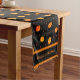 Engraçado e colorido guião Feliz de Halloween, abóboras laranja, assustador e assustador jack-o-lanterno com bolinhas sem costura e linhas laranja sobre fundo preto. Boa Mesa de presente de Halloween. Runner para sua família e amigos que amam o padrão das abóboras de Halloween. Você pode alterar o texto ou remover clicando no botão personalizar.