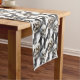 Design de mesa de corredor de de Halloween com crânios assustadores sobre um fundo geométrico texturizado criado com um pincel. Ideal para decorar mesas de jantar, festas de Halloween e reuniões festivas, dando uma atmosfera sazonal na moda e ligeiramente estranha.