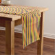 As faixas brilhantes nas cores do Halloween de laranja, preto, amarelo-verde e branco se combinam para fazer um corredor colorido de mesa. Não é tão obviamente Halloweeny, e poderia ser usado o ano todo. Perfeito para Ação de Graças, também.