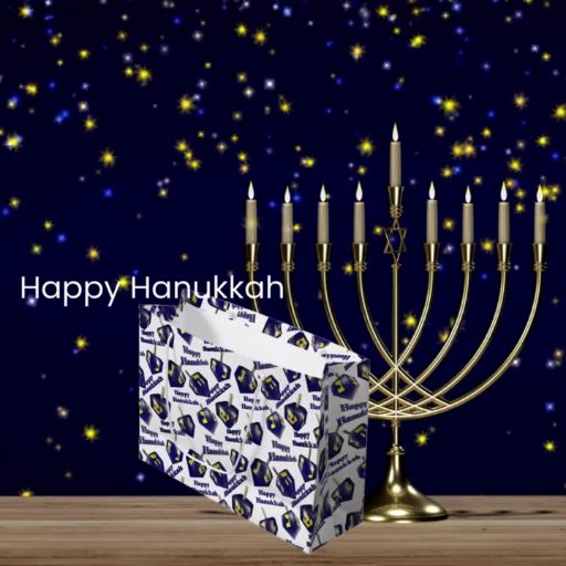 Um sonho gira entre texto que diz Happy Hanukkah.