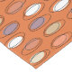 Uma era atômica inspirou uma design de arte-pop com tons de laranja, pêssego e bege em ovais e rabiscos. Para qualquer um que ama arte espacial do século 20.