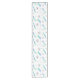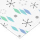 Uma era atômica retro design com um tema de Natal. Apresenta flocos de neve prateada e turquesa e ornamentos de árvores de Natal verdes e hortelã.
