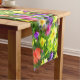 Este corredor decorativo de mesas florais impressionista é coberto por massas de flores em todas as cores do arco-íris. Desfrute do padrão de abstrato floral amarelo, laranja, rosa, vermelho, azul, roxo e branco sobre um fundo de folhas verdes. Ao ver esse cobertor artístico, lembra-se o jardim das pinturas impressionistas francesas. Que presente adorável para jardineiros!