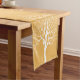 Este corredor de mesa de Natal é mostrado com uma cor de fundo dourada e tem um design de impressão de árvore branca de inverno. Tamanho de 14" x 72" Personalize este item ou comprar como está.