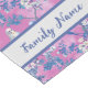Personalize este corredor de mesa elegante com um padrão de borboletas brancas e borboletas azuis em um fundo de ping impressionante com seu nome de família.