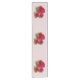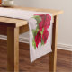 Ele foi projetado em um corredor de mesa de 14"X72". Se você tentar alterar o tamanho, verifique se o design funciona no tamanho escolhido. Você poderia tentar editá-lo. Design floral elegante num corredor mesa. Isto pode fazer um bom ponto focal para um casamento na mesa da noiva e do noivo. Design a festa com outras peças do partido, como uma toalha de mesa e guardanapos.