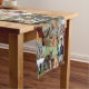 Mesa de colagem de fotos personalizada com 21 fotos em uma colagem vertical de fotos sobrepostas sem bordas que se repetem para cobrir todo o corredor da mesa. O corredor de mesa personalizado impresso com fotos em uma colagem sobreposta.
