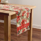 Poinsettias de Natal Curta Mesa. Clássico, eterno e elegante para a temporada de Férias. Um padrão de flores brancas e vermelhas das aquarelas de inverno/Poinsettias com bagas e verde/folhagem faz a base do corredor. Em cada lado há uma fita impressa com texto personalizável em branco, deixe-a como está com Feliz Natal ou adicione a sua. Este corredor e design de mesa de vem com 3 tamanhos e comprimento. Decorre sua casa de Natal com este eterno e mesa decorativa. Consulte os outros produtos nesta coleção para obter produtos correspondentes. Faça um tema coeso com sua decoração de Natal ou receba muitas ideias de presentes.