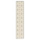 This pretty Holiday table runner features a pattern in neutral tone pattern of trees and snowflakes. The gold and white silhouette images are placed on a soft creamy tan background. This pattern complements any Christmas decor, and looks great on a darker red or green table covering.