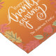 Folhas coloridas com tipografia branca em laranja cinza queimada, terracota, fundo amarelo e nome da família para personalizar. Perfeito por um agradecido janto familiar de Ação de Graças.