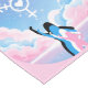 Silhuetas femininas estão sob um céu de algodão doce com um símbolo transgênero branco no céu como o sinal de morcego, ele tem um coração no meio.