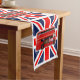 Este corredor colorido da mesa decorado com um teste padrão que caracteriza o autocarro de dois andares vermelho famoso colocado sobre Union Jack iluminará acima de todo o partido da celebração! Cores usadas: vermelho, branco, azul, e preto.