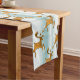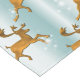 Esta mesa de Natal azul e dourada tem um padrão de renas ouros, correndo sobre o gelo no Polo Norte. Eles estão cercados por estrelas brancas cintilantes. Este pano decorativo de mesa de feriado vai adicionar um toque muito festivo na decoração de sua casa para as férias.