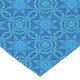 Mesa em um padrão mandala em tons de azul denim claro a escuro, com efeito de aquarela geométrico