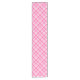 Um corredor de mesa de 14" x 72" com um belo design de padrão de xadrez diagonal em rosa rosado pastel.