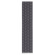 Um padrão final geométrico que lembra riachos de renda. Em roxo sobre fundo preto.