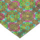 Padrões geométricos vibrantes repetem-se por todo o design, apresentando modos intrincados, semelhantes aos caleidoscópios com uma mistura de tons verdes, azuis e cor-de-rosa. A disposição simétrica cria um efeito visualmente estimulante e colorido de tapeçaria.