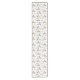 Pequenos pássaros e borboletas são os traços no estilo fofo do boho neste corredor de mesa. As cores utilizadas incluem ouro, cinza azul e verde, e as imagens são colocadas sobre um fundo branco.