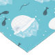 Playful polar bears in Santa hats float on icy blue seas surrounded by igloos, fish, and snowflakes. A cool Christmas favorite.