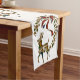 Um corredor festivo e elegante de mesa de Natal, com uma bela rena ouro, com uma trilha de estrelas douradas, arco vermelho e holly verde em forma de coroa de Natal. Esta toalha de Natal na moda irá adicionar um toque de talento e alegria à sua decoração natal para a época de férias.