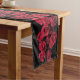 Este bonito corredor de mesa floral é decorado com um padrão repetitivo de abstrato de flores em um fundo preto puro. Que ideia encantadora para jardineiros!
