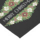 Um corredor de Mesa de Natal chic, com várias Rosas de Natal, Holly e Ivy sobre um fundo negro, com Feliz Natal em na moda, cartas modernas, em branco. De um design pintado à mão por Judy Adamson.