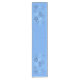 Belo corredor mesa em lindas sombras azuis com símbolos de diferentes religiões e um labirinto ao fundo. Adequado para usar como cobertura de altar interreligioso.