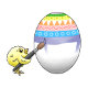 Cute and wonderful Easter chicks paint a colorful Easter egg.