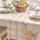 O primavera mesa runner apresenta uma design de xadrez macia, estilo aquarela, em tons de pêssego, verde e branco. Adequado para decoração sazonal ou casual.