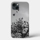 Os pássaros negros caem na árvore enquanto alguns de seus membros fazem voo. Proteja seu telefone com a inspiração da natureza hoje!