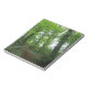 Este incrível bloco de anotações mostra uma fotografia tirada numa floresta na Inglaterra. As belas árvores brilham com um verde intenso enquanto se aproximam do céu. Um pequeno caminho se espalha profundamente na floresta cercada por árvores altas.