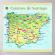 Poster do mapa mostrando as muitas rotas do Camino de Santiago