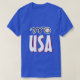 Camisa americana do basebol t para jogadores e fãs. Os EUA embandeiram cores vermelhas brancas azuis com bola engraçada. T patriótico dos E.U. para América.