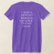 A conscientização do câncer de pâncreas usa uma fita roxa para sua consciência de causa. A arte da camisa apresenta uma pintura de anjo de fita de reconhecimento roxo. A mensagem da camisa do anjo de conscientização anota "Acredite no Câncer de pâncreas CURE". Na parte de trás da camisa está a mensagem de causa "Eu espero e apoio a consciência para curar o Câncer de pâncreas". A roupa de anjo de consciência roxo pode ser personalizada com mensagens personalizadas para fazer roupas de evento para a arrecadação de fundos, camisas de caminhada do grupo, presentes de camisetas de conscientização ou outras ocasiões de eventos de causas especiais para a mercadoria para ajudar a aumentar a conscientização da causa em público para a ajuda da sociedade em criar ajuda e causar mudanças.