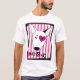 Camisa artística de bull terrier do amor de Amore. Uma grande camisa do amor ou do dia dos namorados para dar a o que special alguém! Ou talvez porque você apenas ama a raça do cão de bull terrier. Uma grande ilustração de uma cabeça preto e branco de bull terrier em um fundo listrado no rosa & no branco. O amore do texto é feito com alguma grande tipografia e é certo estar para fora!
