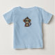A camiseta azul com um pequeno impressão de macaco é vibrante e atraente para os olhos. O pequeno impressão de macaco adiciona um toque de diversão e brincadeira ao design geral.